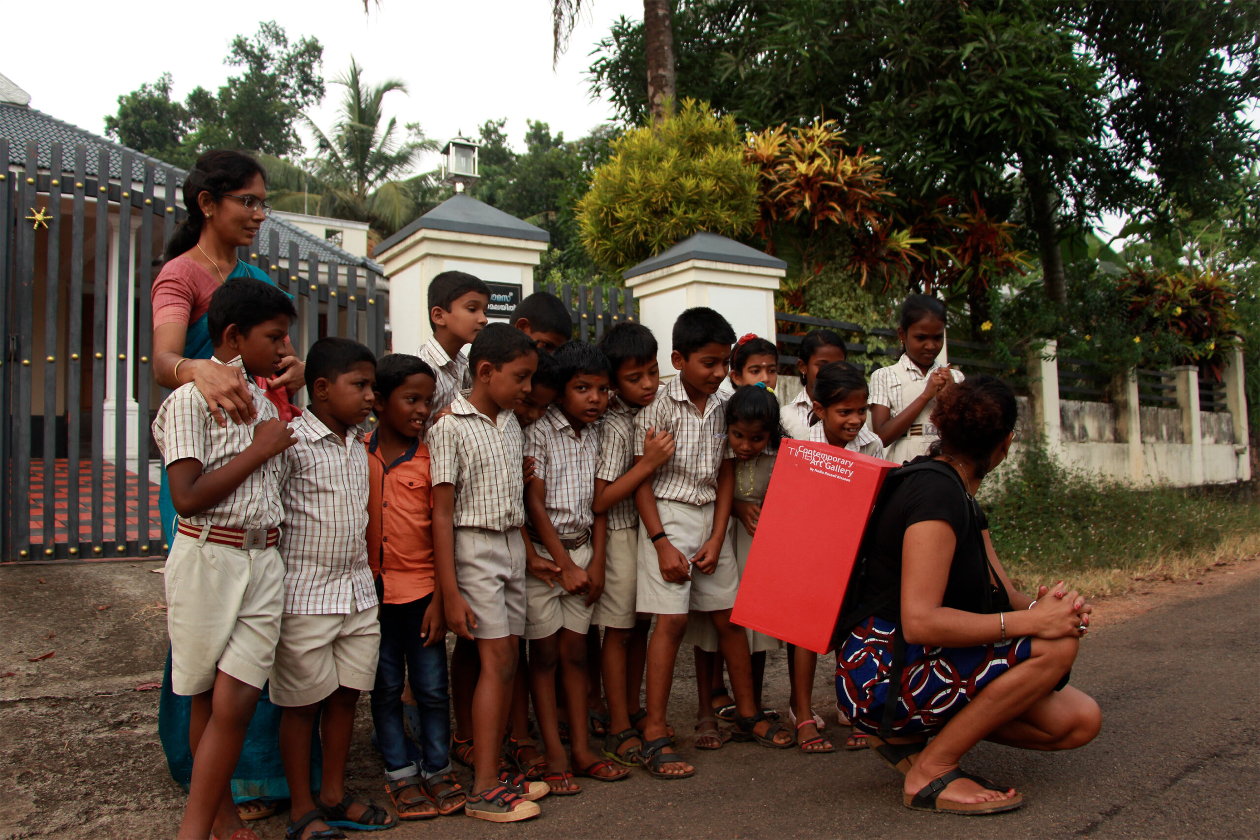 J'ai décidé qu'il était temps que Tinbox développe sa mobilité à l'international. Et j'ai choisi l'Inde comme première destination afin de représenter la scène artistique de Bordeaux et de Nouvelle-Aquitaine dans cette petite galerie-œuvre singulière qui se réinvente sans cesse. Je suis partie en décembre 2018 avec la Tinbox #6 et une exposition de Margot Sokolowska. J'explore un autre mode de déplacement de la galerie à travers la marche. J'ai donc fait une performance et porter Tinbox sur mon dos dans les espaces publics pendant 7 jours durant la quatrième Biennale d'art contemporain de Kochi