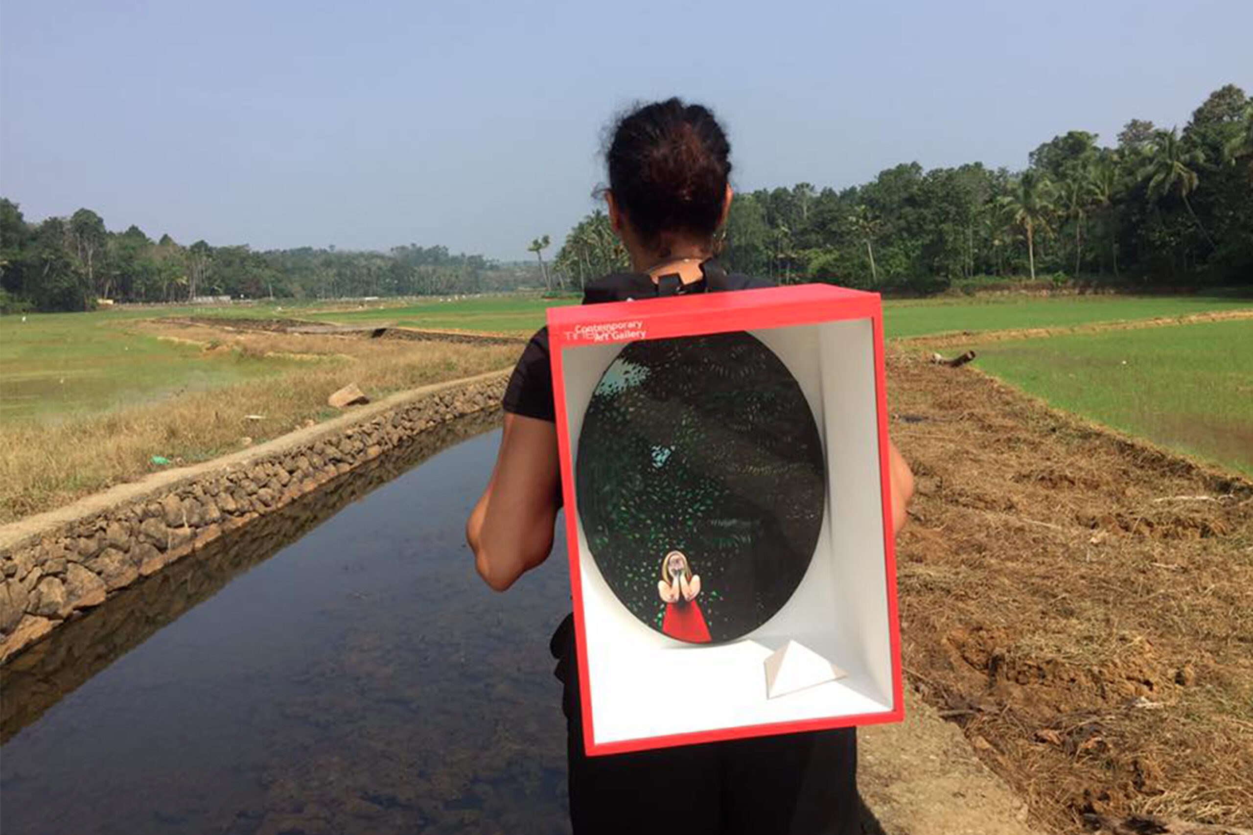Exposition Tinbox #6, Non, Non de Margot Sokolowska en 2018 dans la Campagne du Kerala Inde (Crédit Maana & Prince)
